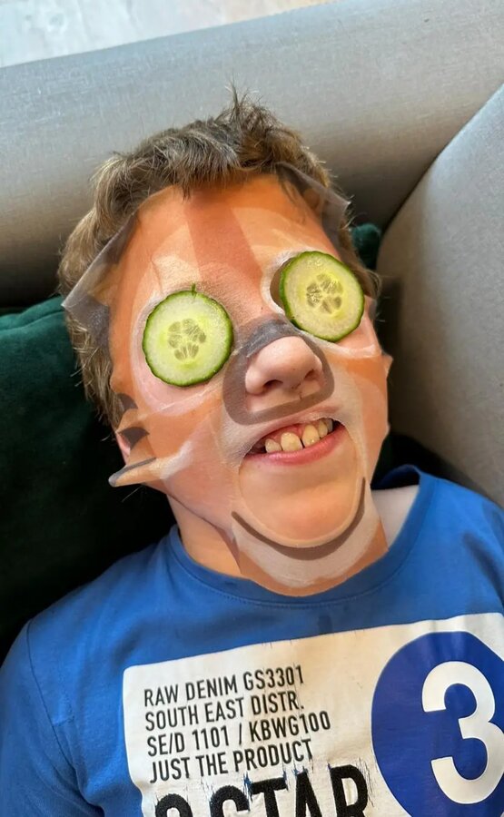 Lucas van 13 woont in Damwoude bij Alliade en geniet van een gezichtsmasker