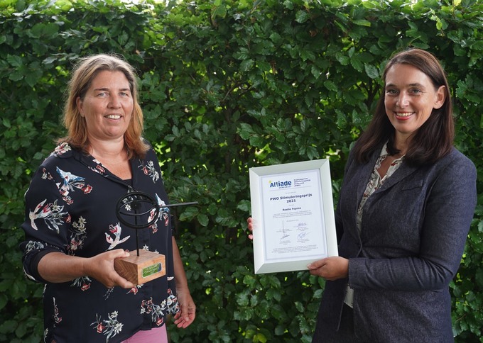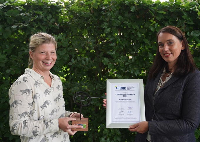 Sinds 2020 reikt Alliade jaarlijks de PWO-Stimuleringsprijs uit. Het is een pluim voor mensen die zich buitengewoon hebben ingespannen voor praktijkgericht wetenschappelijk onderzoek en een bijzondere groei en gedrevenheid hebben laten zien. Op 26 augustus ontvingen Rixt Huls, arts verstandelijk gehandicapten bij Talant, en Roelie Fopma, gedragskundige bij Talant, de prijs uit handen van Elze Vonk, lid van de Raad van Bestuur.