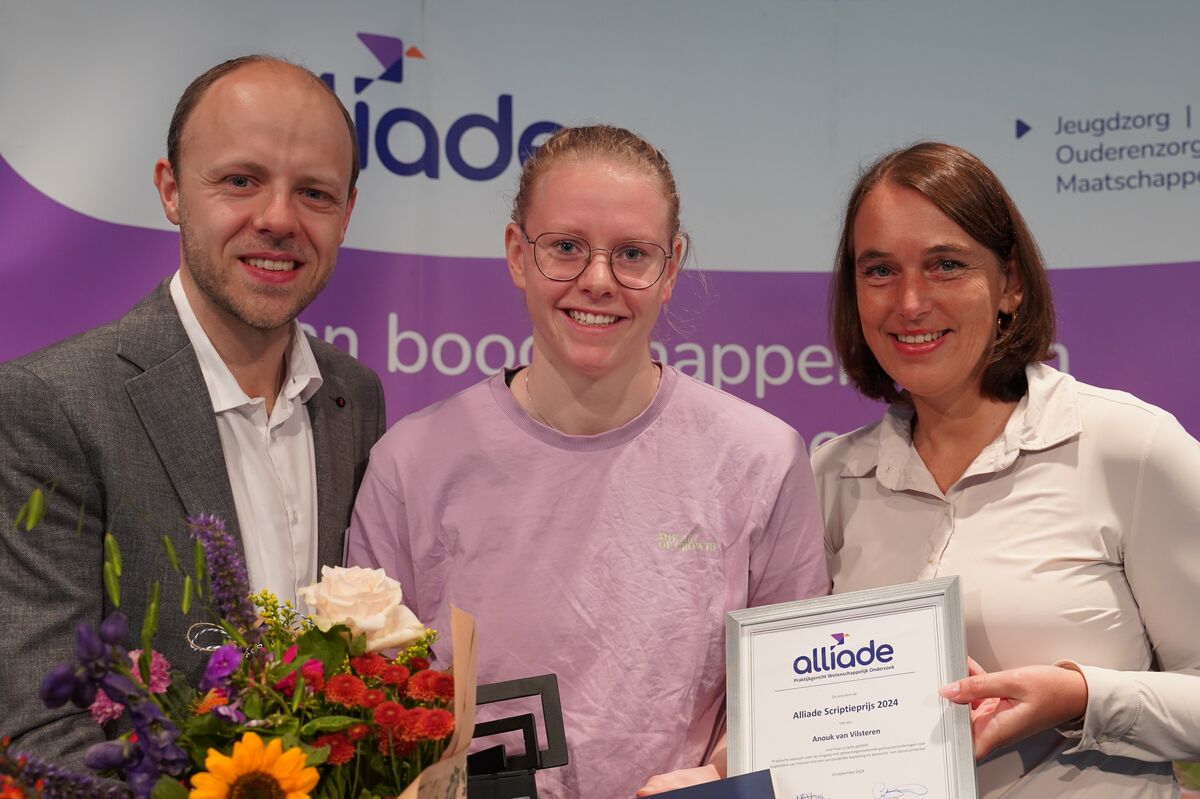 Scriptieprijs: student orthopedagogiek Anouk van Vilsteren voor haar onderzoek naar het omgaan met gedragsveranderingen bij mensen met een verstandelijke beperking en dementie.